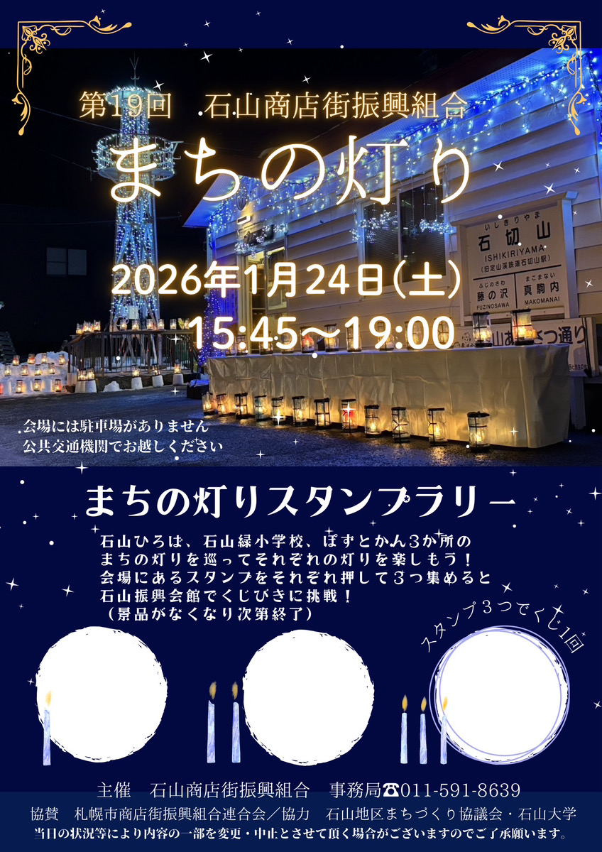 石山商店街振興組合では、今年も冬の恒例イベント第19回「まちの灯り」を開催いたします!